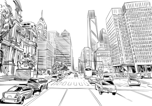 Szkic Linii Ulicy Fototapeta Fototapety Liniowy Automobil Miejski Myloview Pl